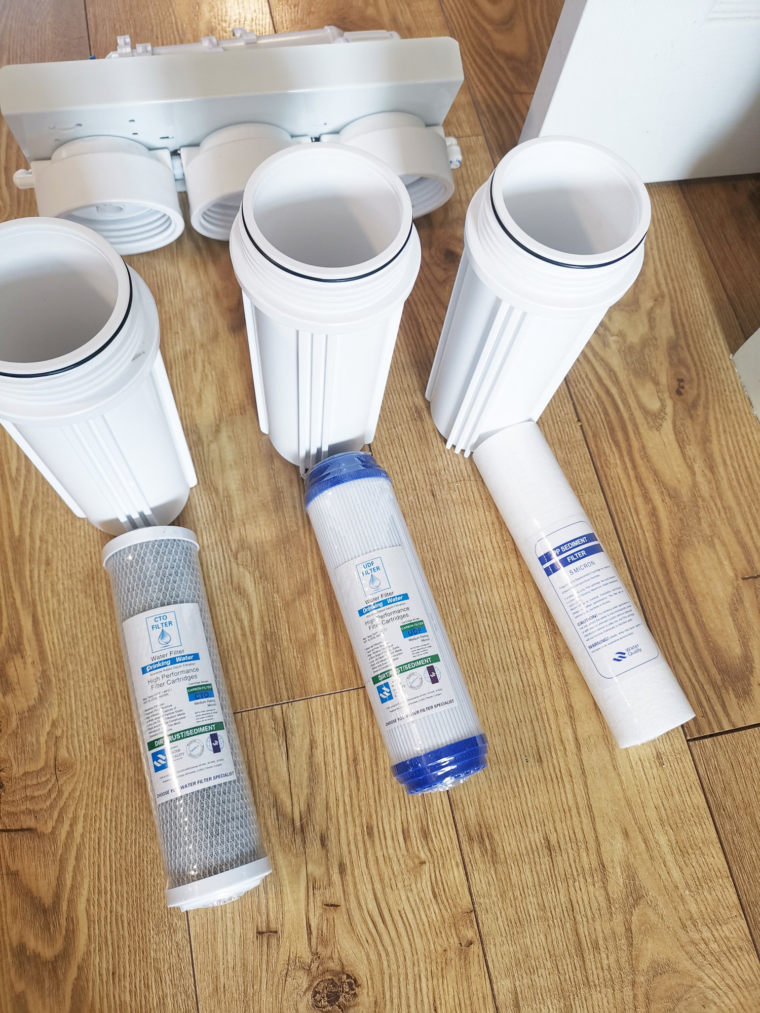 - Sediment / Carbon cartridges โ Replace every 6 months (shown in the picture)